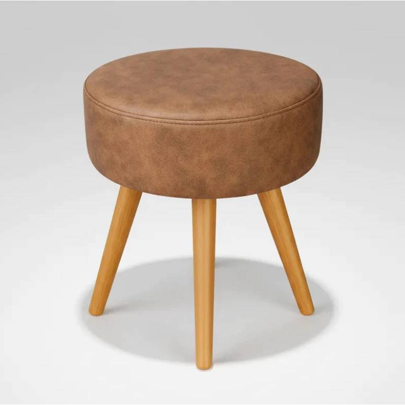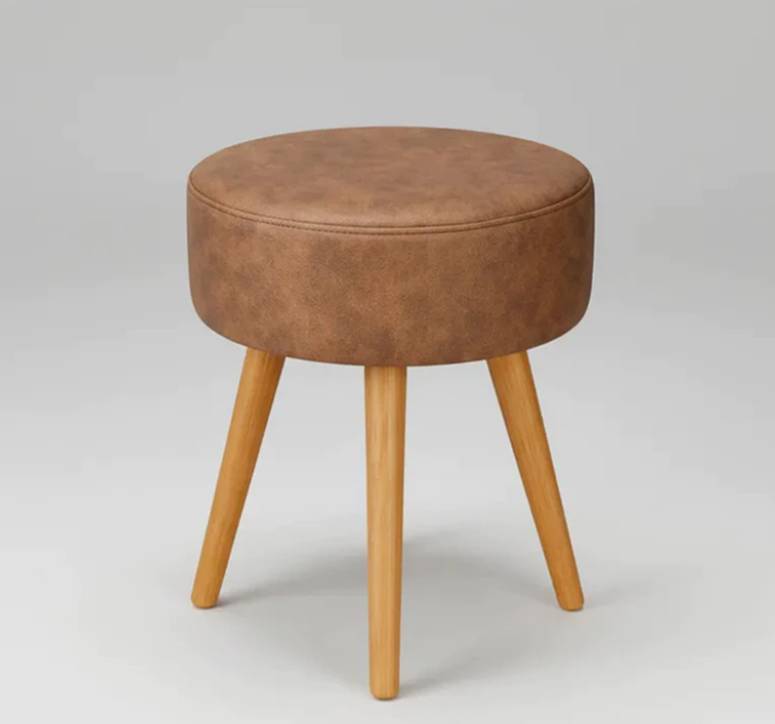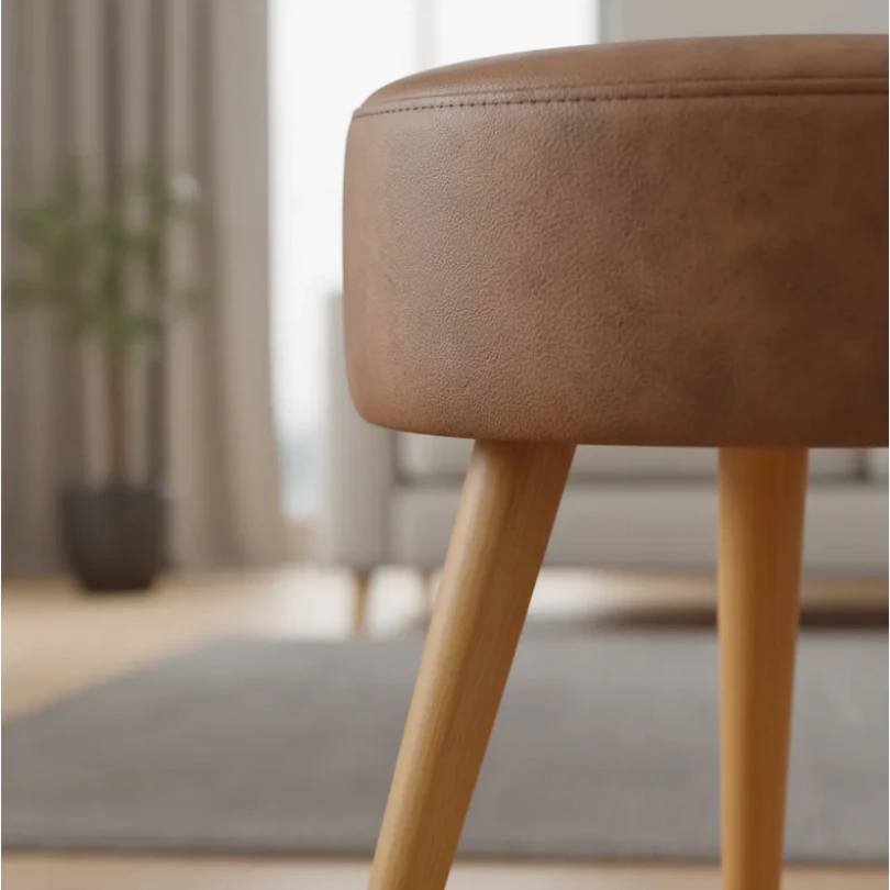 Puff Retrô Redondo com Pés Palito de Madeira, Courino – Nexo Variettá